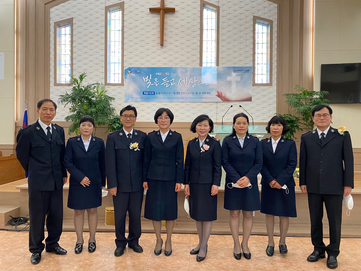 지난 부활절부터 성령강림절 까지 50일 동안 본영의 기획국주관으로 “빛을 들고 세상으로”(엡5:8-9)주제로 전개한 전도운동에서 서울지방 동두천 영문이 전국우수영문으로 선정되었습니다. 기획국에서 주관한 심사위원들은 코로나19의 어려움속에서도 물심양면으로 지원을 아끼지 않은 동두천영문의 구세군과 지역사회에 끼친 선한 영향력을 높이 평가 하여 전국 우수영문으로 선정하였습니다. 동두천영문이 우수영문으로 선정되기 까지는 선정 내용으로는 주2회 마스크 전도, 건빵 전도,방향제 전도, 모바일 전도 카드 등 전도지 총 배부수가 2,000가정 이상으로 최선을 다하여 전도하였습니다. 뿐만 아니라 50일 전도운동 기간 동안 영성회복과 전도의 능력을 받기 위하여 새벽기도회 외 전도 대상자를 위한 매일저녁 8시에 군우들과 함께한 50일 특별 저녁기도회, 온라인 실시 기도회 등을 진행 하였습니다. 지역의 한부모 청소년가정 5명을 선정하여 장학금으로 한 가정에 30만원씩을 자체 전달하였습니다. 그 결과 1월~4월까지 평균 출석인수가 10명 내외 이었으며, 50일 전도운동 기간 동안 회개인 15명이 등록되어 출석인원 대비 회개인 비율이 150%에 이르렀습니다. 본영 각료회의에서는 이와 같은 객관적인 자료와 성과들을 근거로 동두천영문을 2021년 50일전도 운동 전국 우수 영문으로 선정하게 되었습니다. 우수영문으로 선정된 동두천영문에는 부상으로 상금 50만원과 군국 사령관이 수여하는 격려 패를 전달하였습니다.