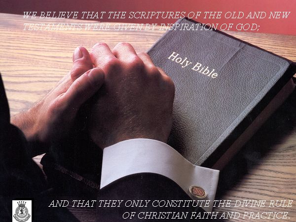 우리는 신구약성서가 하나님의 영감으로 이루어졌으며 성서만이 그리스도인의 신앙과 실천의 표준임을 믿는다.