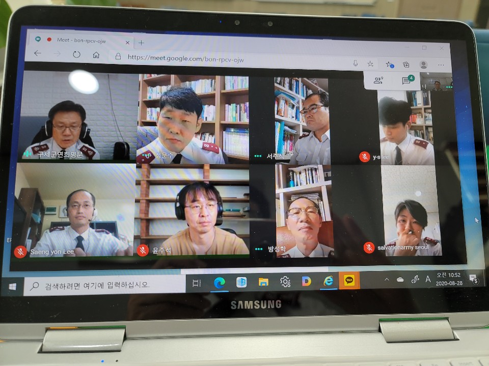 지난 8월 28일(금) 오전 10:30~12:00 까지 코로나19의 장기화로 인한 비대면 시대에 대비하여 각 가정에서 신앙생활에 도움을 줄 수 있는 셀프스터디 책자를 발간하기 위하여 연수담당관이신 김종선 사관님의 주도로 화상회의를 진행하였습니다.