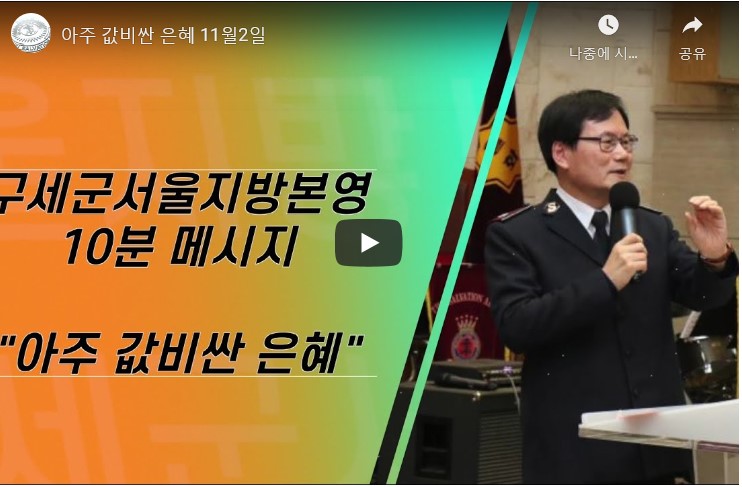 서울지방에서는 서울지방 YouTube 계정을 개설하여 신재국장관님의 회복영상메세지를 제작하여 10월부터 매주 월요일 업로드하고 있습니다. 코로나19시대를 맞이하여 신앙생활을 마음놓고 편안하게 할 수 없는 어려운 이 때에 피곤하고 지친 영혼을 위로하고 회복으로 이끄는 묵상의 말씀을 전하여 영문 및 군우들에게 필요한 영적 양식을 제공하는 소중한 매개체가 되기를 기도합니다.