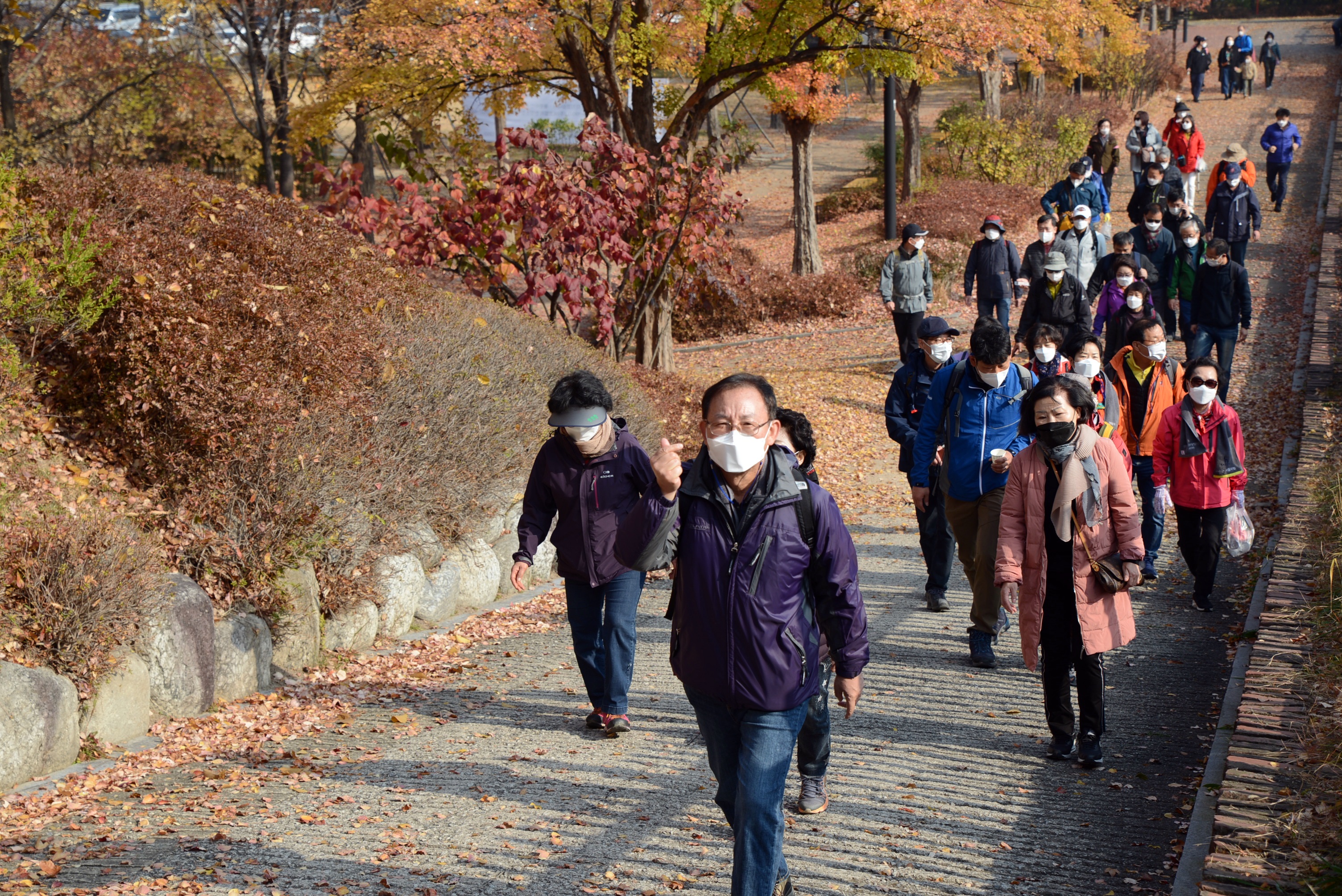 지난 11월 7일(토) 서울시내 영문 사관 및 하사관들과 함께 기쁨의 산행이라는 주제로 서울 시내 안산자락길을 산책하는 시간을 가졌습니다. 코로나로 인해 움츠려들었던 마음을 활짝 펼 수 있는 행복한 시간이었습니다. 아직도 안심할 수 있는 단계는 아니기에 출발 전 각자 방역을 철저히 하여 출발하였으며, 산책 내내 마스크를 착용하여 미연의 사고를 방지하며, 모두가 즐거운 산행을 할 수 있었습니다. 총 60여분이 참석하였으며, 총 7개조로 나뉘어 조별로 점심도시락을 함께 먹으며, 서로 다른 영문 사관, 하사관과의 소통의 시간을 가졌으며, 식사 후 마포영문 김수연부교의 건강체조 시간을 통해 각자의 건강체크 및 건강생활 비법을 소개하는 시간을 가졌습니다. 그리고 마지막으로 기쁨을 주제로 촬영한 사진을 서로 나누고, 상품권추첨의 시간도 가지는 등 짧은 시간 동안 다양한 활동을 가지며, 서로 소통하고 함께하여 행복하고 기쁜 시간이었습니다.