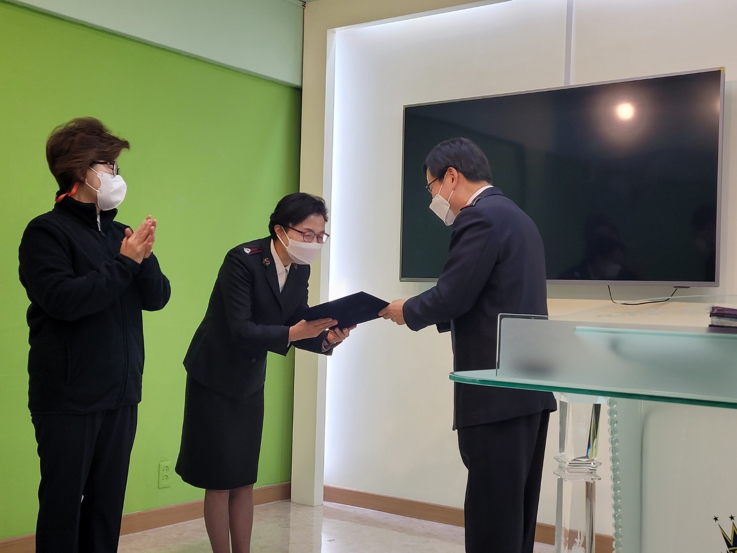 1991년 64기 예수의 종으로 임관바다 30년 근속을 하게 된 두 분의 사관님께 근속장 전달식을 진행하였다. 올해는 코로나로 인해 전국의 근속사관을 위한 행사는 생략되어 지방별로 근속장을 수여하게 되어, 서울지방에서는 아현영문 남기숙 사관님과 평안영문 김정아 사관님이 30주년 근속장을 받게되어 서서울지역 사관님들의 모임 시간에 간단한 전달식을 가졌다. 젊은 청년에게는 한 인생의 시간인 기간을 묵묵히 사역하며 감당해 오신 두분께 감사와 축하를 드립니다.